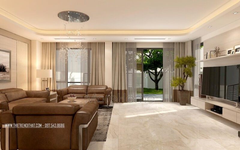 Thiết kế nội thất phòng khách hiện đại tại biệt thự Văn Khê Hà Đông