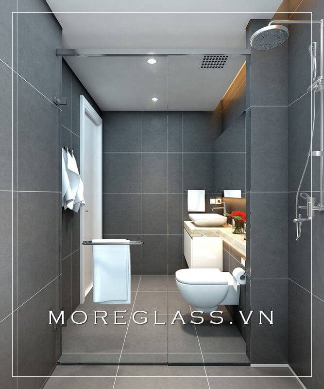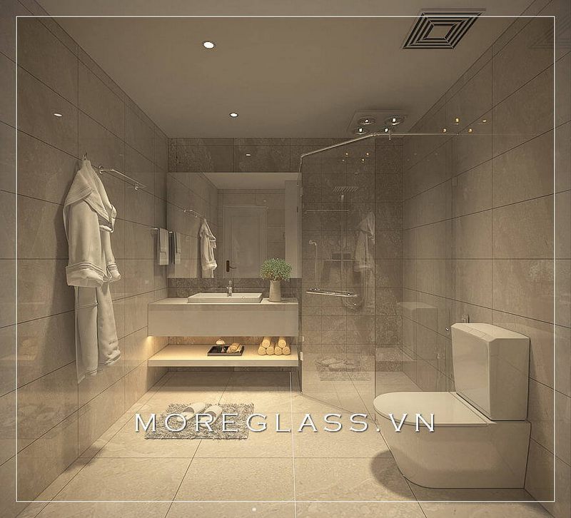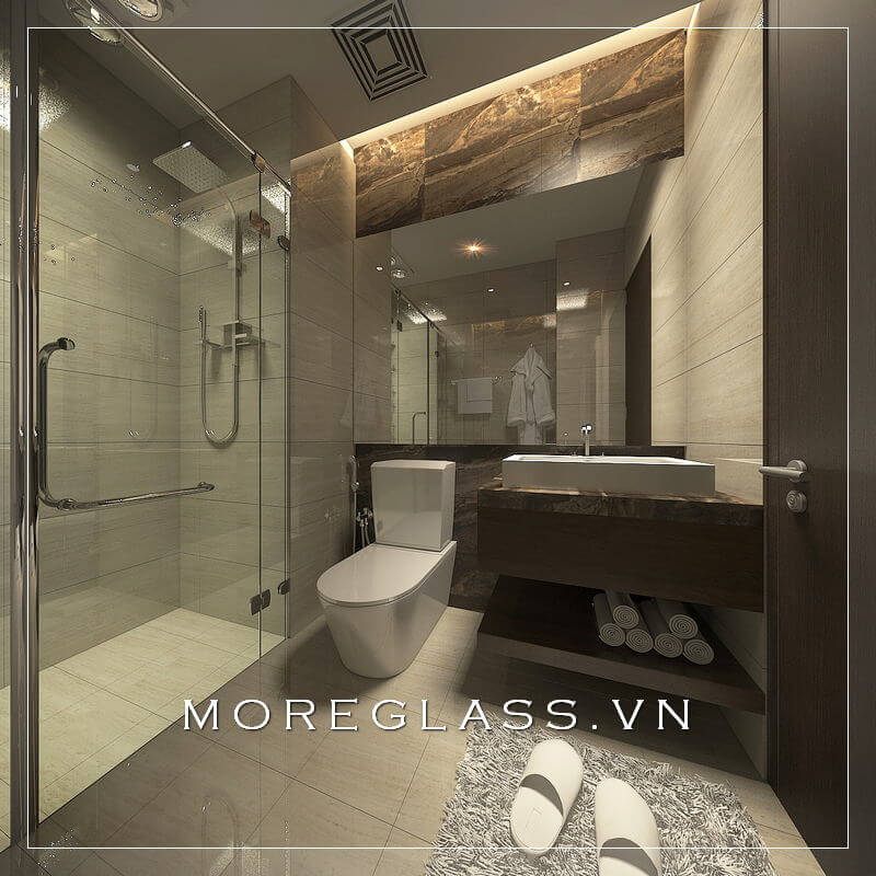 Mẫu phòng tắm chung cư bằng kính cường lực sang trọng tiện nghi.