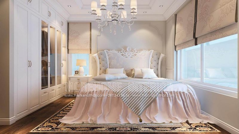 Tủ áo gỗ công nghiệp sơn cao cấp, cánh soi pano giả huỳnh theo phong cách cổ điển, kết hợp cánh huỳnh kính pha chút hiện đại sang trọng