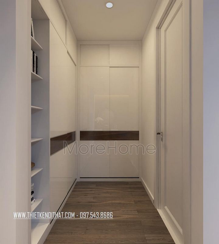 Gợi ý mẫu trang trí tủ quần bằng gỗ màu trắng âm tường tối ưu được diện tích không gian gọn gàng, ngăn nắp hiện đại mang tính thẩm mỹ cao.