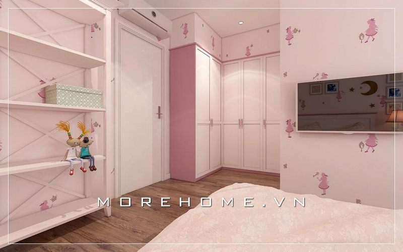 Mẫu tủ quần áo hiện đại màu trắng trẻ trung được lựa chọn tại phòng ngủ bé gái