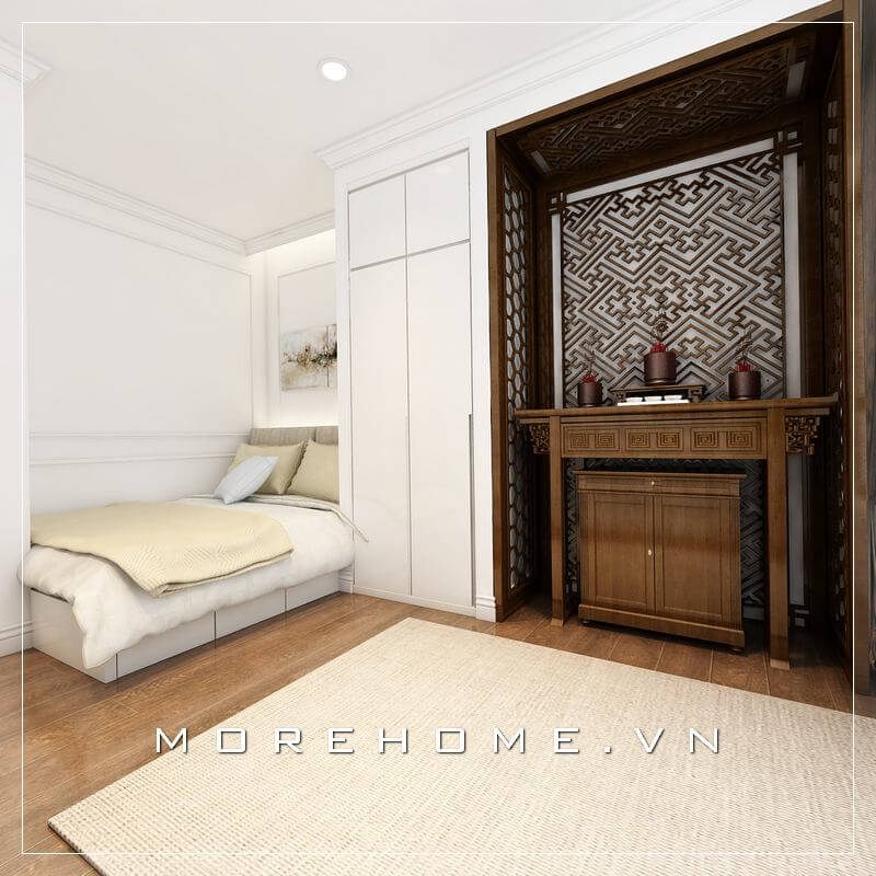 Tủ áo gỗ công nghiệp âm tường tạo hiệu ứng cho phòng ngủ nhỏ thêm rộng thoáng và sang trọng hơn