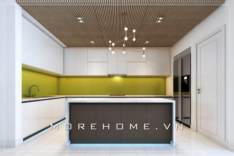 Mẫu tủ bếp gỗ chữ u hiện đại cho phòng bếp nhà biệt thự
