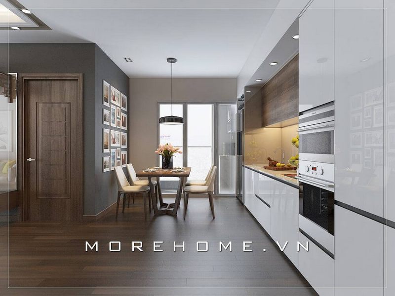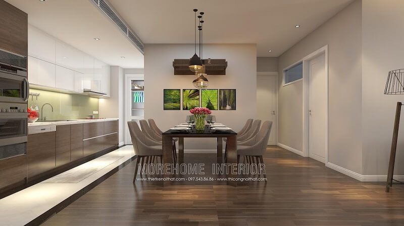 Mẫu bàn ăn gỗ hiện đại cho phòng bếp ăn chung cư