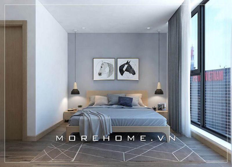 Sắp xếp phòng ngủ chung cư nhỏ với sự lược giản tối đa những nội thất không liên quan giúp căn phòng có được độ thông thoáng cần thiết
