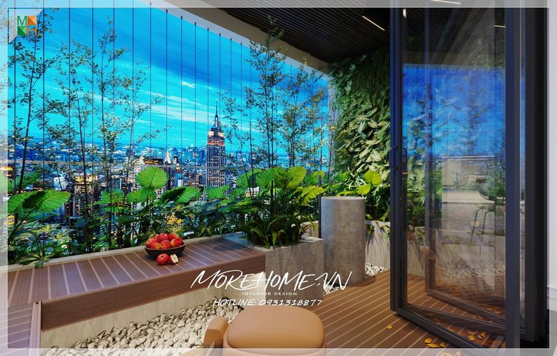 Cửa kính ngăn giữa không gian bên trong và logia mang thẩm mỹ hiện đại .