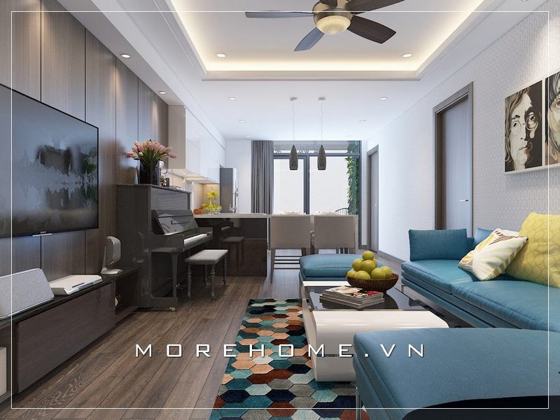 Nội thất phòng khách với tông màu lạnh thể hiện sự nhẹ nhàng và tinh tế theo sở thích của gia chủ