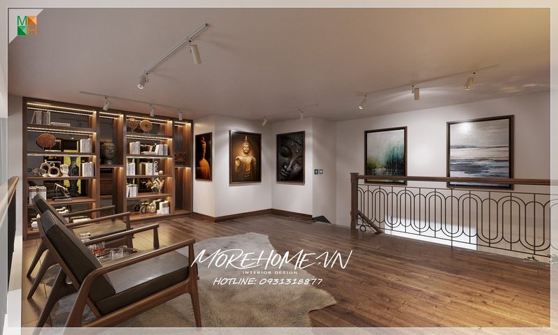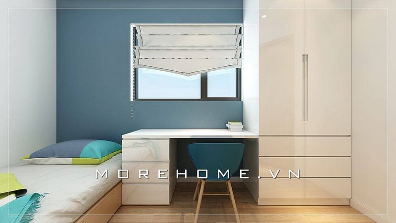 Khu vực làm việc được bố trí một cách hợp lí, khoa học giúp tận dụng được mọi góc khuất của căn hộ, tạo cảm giác rộng và thoáng hơn