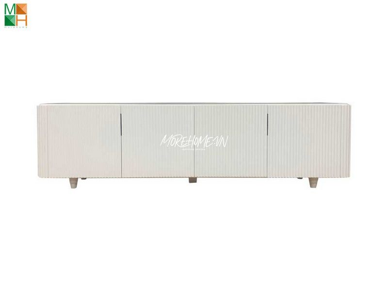 Kệ ti vi màu trắng đầy ấn tượng với những đường nét chạm trổ đầy tinh tế
