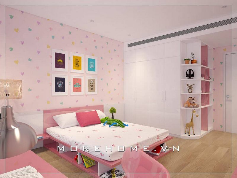 Mẫu thiết kế phòng ngủ bé gái màu hồng tại căn hộ chung cư hiện đại