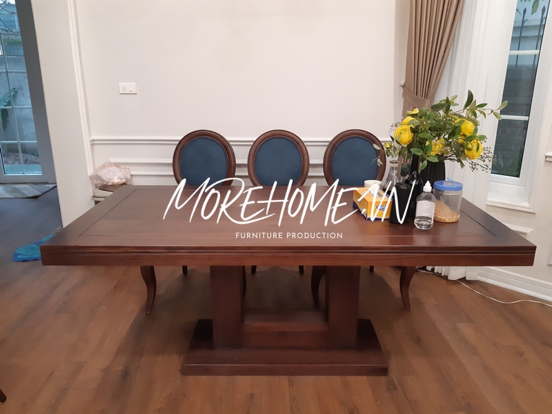 Bàn gỗ tự nhiên nét chạm khắc tỉ mỉ, sắc nét sang trọng, tôn lên sự cao cấp thẩm mỹ của không gian