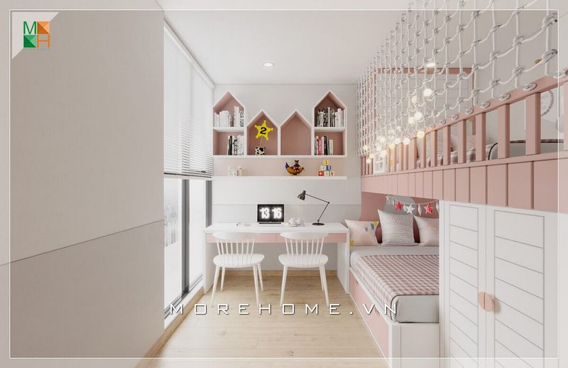 Nội thất phòng ngủ bé gái hiện đại với đồ nội thất thiết kế thông minh và tiện nghi