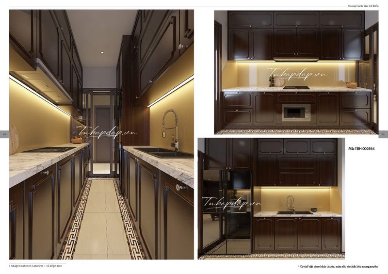 Các góc nhìn khác nhau của mẫu thiết kế phòng bếp màu trắng phong cách tân cổ điển có hệ thống tủ bếp chạm khắc nghệ thuật trong không gian nhà phố, biệt thự.