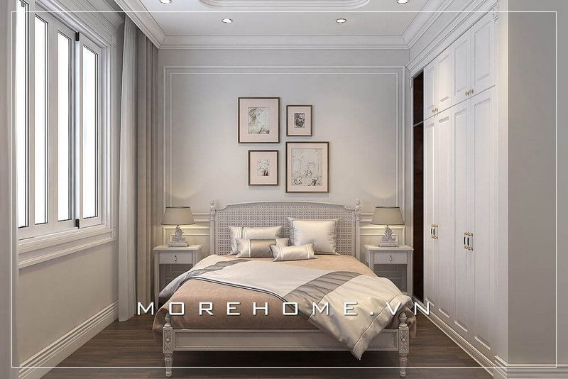 Giường ngủ cổ điển tối giản, nhẹ nhàng với các chi tiết được giảm đi, tạo nên một không gian sang trọng và thanh thoát.