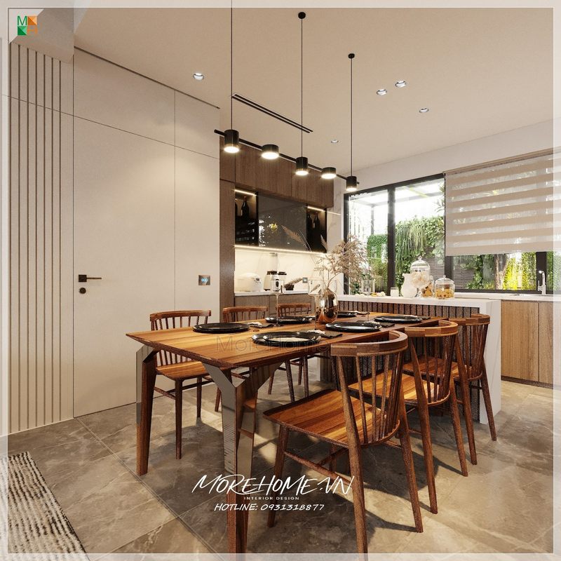 Việc thi công bộ bàn ăn 6 ghế hiện đại có tựa vững chắc sẽ tạo ra một không gian thoải mái để sử dụng, với các ngăn nắp được thiết kế để lưu trữ đồ dùng giúp giảm thiểu bộ nhớ.