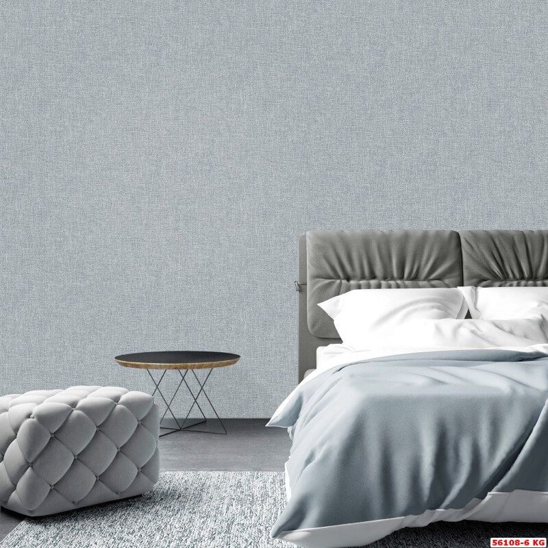 Bạn có thấy thích hợp về gợi ý trang trí nội thất phòng ngủ hiện đại bằng giấy dán tường hàn quốc màu xanh xám cao cấp này không?
